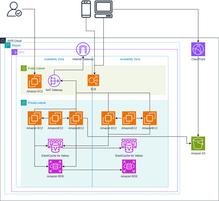 すでにAWS上で既存サービスを運用していた同社は、その経験を活かしAWSの利用を拡大しています。これまでシステム基盤の安定運用を伴走支援してきたNHN テコラスが、引き続きAWS環境を用いた開発のサポートを行っています。